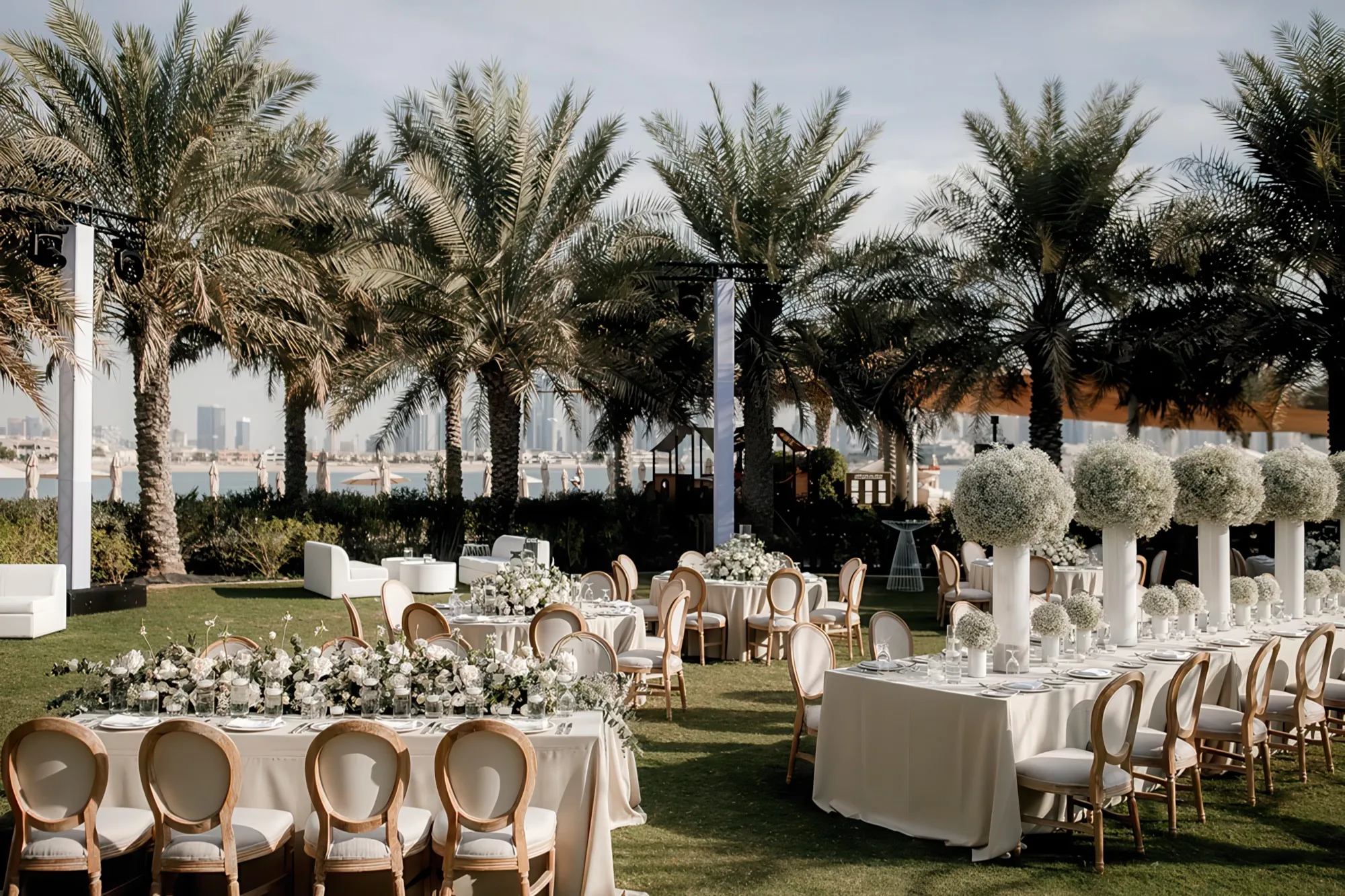 Cyprus enjoys exceptional weather, but we always prepare for every possibility. Our luxury marquee options provide elegant weather protection while creating spectacular covered spaces for dining and dancing. These aren't basic tents—they're sophisticated structures with lighting, climate control, and beautiful styling that enhance rather than compromise your celebration.